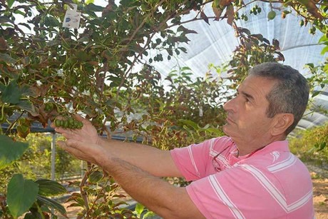 “Estamos realizando estudios en campo de ensayo”, comenta su hermano Manuel Barroso, copropietario y técnico agrícola. “Actualmente cultivamos variedades autofértiles (Issai, Red, Jumbo). La variedad Issai tiene menos calibre, pero es muy dulce y aguanta en el árbol. La recolectamos con 5 grados Brix y alcanza los 12-13 en cámara. Ahora buscamos variedades que precisen polinizadores y más tempranas que la Issai para aprovechar el hueco de mercado de los grandes productores, mayoritariamente de Oceanía. En Huelva podemos empezar la recolección de los kiwiberries en agosto en lugar de setiembre-octubre. Este campaña prevemos unos 25.000 kilos de kiwiberry. Ahora está en fase de engorde y se presenta bien. Esperamos aumentar superficie en un futuro próximo", prosigue Francisco Barroso.