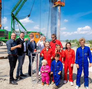 Finalmente, Jack Groenewegen (Prominent), Pleun van Duijn (Purple Pride), Floris van der Linden (Greendiamonds), Michel Zuijderwijk (SweetPoint) y Theo Jansen (PapriCo) presionaron el botón rojo para poner en marcha el martinete. Con esto, el primero de los 1.598 pilotes se quedó clavado.