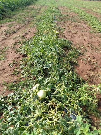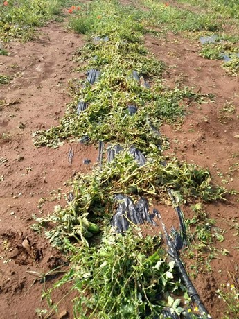 "Creemos que podremos recuperar todavía una pequeña parte de los calabacines. En el resto de variedades, los frutos se encuentran en un estado irreversible. En las plantas de sandías, por ejemplo, ya había frutos visibles de alrededor de medio kilo. Todo ha quedado destruido".