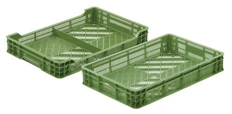 Las cajas para arándanos se pueden utilizar para la cosecha y el almacenamiento. Con una altura de 90 o 100 mm, son particularmente bajas para evitar que las frutas se aplasten unas a otras por el peso. Opcionalmente, los envases también están disponibles con una pared intermedia, que evita que las bayas se desplacen hacia adelante y hacia atrás. "Además, las cajas no tienen esquinas afiladas que puedan dañar las bayas. La superficie lisa es fácil de limpiar e higiénica", concluye Gerold.