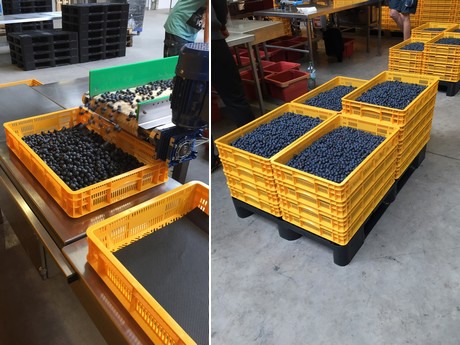 La perforación del embalaje es particularmente importante. Las aberturas en la parte inferior y los lados no deben ser demasiado grandes para evitar que las bayas más pequeñas las atraviesen, pero deben garantizar una ventilación adecuada. "Nuestras cajas para arándanos están diseñadas para que el aire pueda circular de manera óptima. Son adecuadas para el almacenamiento a largo plazo de arándanos en cámaras de atmósfera controlada o con tecnología ULO (ultra low oxygen)", dice Gerold Wilms, de la empresa alemana bekuplast. El fabricante de Ringe (Baja Sajonia) suministra sus cajas a muchos productores de arándanos desde hace muchos años. "Gracias a la óptima circulación de aire en los envases, las bayas húmedas y mojadas se secan durante el almacenamiento. La humedad se evapora y se evita la formación de moho". Además, la excelente circulación de aire en las cámaras de atmósfera controlada o ULO permite que las bayas se enfríen de manera rápida y uniforme. Las cajas son particularmente fuertes para poder ser apiladas en palés en los almacenes. En una pila soportan una carga de hasta 450 kilos.