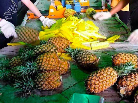 "El mercado de la piña cambia rápidamente después de finales de mayo y principios de junio. Las lluvias monzónicas disminuyen la calidad de las piñas que aún se encuentran en el campo. Además, otras frutas entran al mercado en grandes volúmenes y ofrecen una competencia feroz. Esto debilita la posición de las piñas en el mercado".