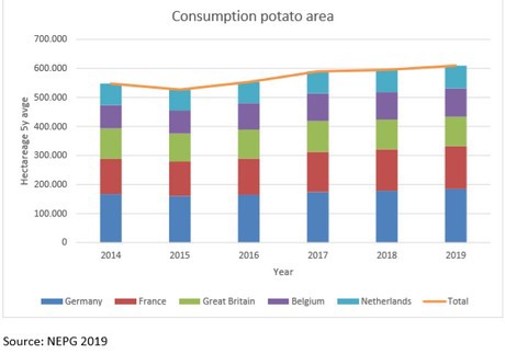 En la última asamblea de miembros de NEPG, se coincidió en que el crecimiento de la superficie están en la línea de la tendencia de la creciente demanda para procesado y exportación. NEPG enfatiza que siempre es el rendimiento y no la superficie lo que determina la cantidad final de cosecha, y la temporada de crecimiento aún es larga. Como no habrá remanente de la cosecha de 2018, la próxima temporada de patata será más larga de lo habitual y podría necesitar más patatas. La verdadera cantidad extremadamente baja de patatas libres en existencias y el retraso de una semana de la primera cosecha para procesado planteará un reto para la industria transformadora, hambrienta de materia prima.