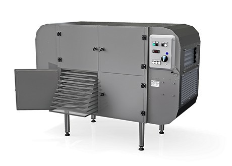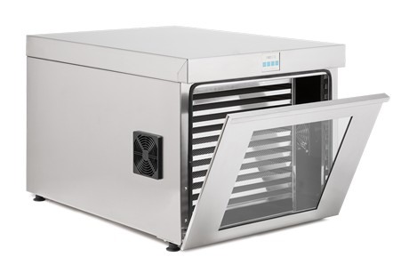 Esta máquina garantiza un avanzado sistema de deshidratación, con la posibilidad de ajustar el grado de temperaturas de operación (de la temperatura ambiente a 70 grados). El sensor de humedad está integrado y la máquina controla y administra de forma independiente la recirculación y la eliminación del aire saturado de humedad. Se ha desarrollado un sistema de luz UV-C que permita la limpieza del aire recirculado en la deshidratadora para un procesamiento más higiénico, así como un filtro de aire de entrada y salida, para evitar que el polvo y los insectos entren en contacto con los productos a procesar.