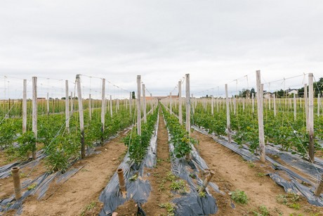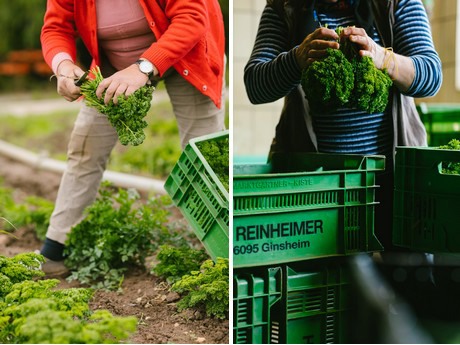 La compañía cultiva una amplia gama de hortalizas de campo abierto en más de 70 hectáreas, desde tomates y lechugas hasta patatas. Una gran parte del cultivo se vende en el mercado semanal de Maguncia y en la propia tienda de la explotación. Lo que queda se destina al retail local y a los mayoristas. Las hierbas de campo abierto se cultivan actualmente en aproximadamente 4 hectáreas, dice Kai. "En lo que respecta a las hierbas, no podemos quejarnos hasta ahora: actualmente tenemos buenas ventas y hasta el momento solo ha llovido dos o tres veces y, afortunadamente, no ha habido tormentas severas. Sólo los bichos, como los escarabajos y los pulgones, a veces nos lo ponen difícil".