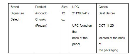 Nature's Touch está retirando voluntariamente sus bolsas de aguacate troceado Signature Select con fecha de consumo preferente de 11 de octubre de 2020, debido a una posible contaminación de Listeria monocytogenes.