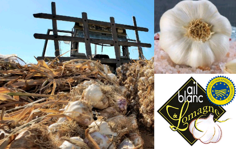 El ajo blanco de Lomagne IGP procede de semillas certificadas, que se corresponden con variedades con características de las poblaciones "Blanc de Lomagne" tradicionales. La plantación se realiza en otoño en las parcelas mencionadas. La cosecha empieza a finales de junio y la sigue un periodo de secado, que dura de 4 a 5 semanas. El ajo blanco de Lomagne se cosecha parcialmente con sus matas y ramos, para secarse "en barras", de forma tradicional. De este modo, se pueden confeccionar las trenzas del ajo blanco de Lomagne. Para el ajo destinado a la comercialización a granel, a las cabezas se les quita el rabillo en el campo, luego se secan por ventilación dinámica. Sea cual sea el modo de cosecha, cada cabeza de ajo blanco de Lomagne pasa sistemáticamente por las manos del productor para el pelado, una etapa indispensable para darle su bello color blanco. La etapa del secado y la intervención manual en el pelado son determinantes para garantizar la calidad de un producto con el Certificado IGP.