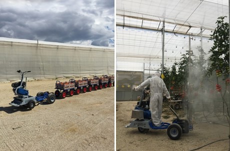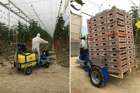 La empresa española Amate, que centra su actividad en la investigación, fabricación y comercialización de carretillas y útiles para la agricultura, ha desarrollado recientemente una máquina agrícola multifuncional que permite el desplazamiento entre líneas de cultivo acoplando diferentes implementos mediante su sistema de enganche.