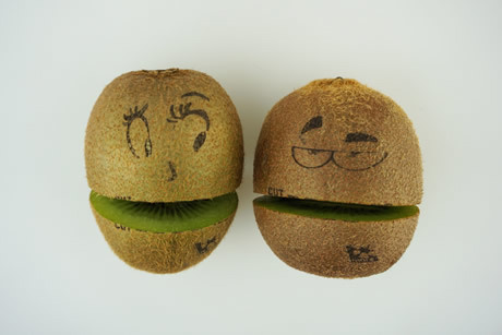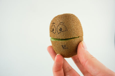 Michaël Wilde, responsable de sostenibilidad y comunicación de Eosta, explica cómo funciona: “Con nuestra tecnología láser Natural Branding podemos proporcionar productos con logotipos y textos, pero con la misma facilidad también se puede dibujar una cara. Se nos ocurrió la idea tomando un café. Lo único que tienes que hacer para convertir el kiwi en un Muppet caprichoso es hacer un corte en el kiwi por donde indica la línea de puntos. Esto crea una boca y Kenny, Katy y Kalissa Kiwi cobran vida. ¡Los niños se divierten un montón con eso!”.