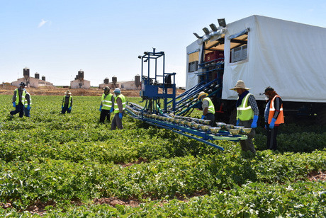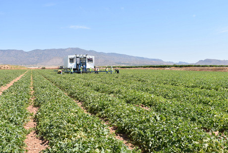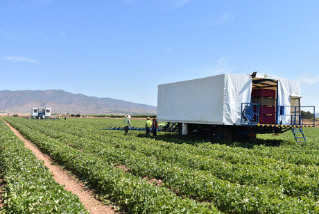 La cosecha de melón se realiza con las mismas máquinas con las que se cosecha la lechuga iceberg. Pero mientras que la lechuga se envasa en el embalaje definitivo directamente en el campo, los melones se envasan en la central. La línea de lavado, clasificación y envasado tiene capacidad para dar salida a 60.000 kg de melones o 14.000 kg de pimientos por hora. Fruca dispone de 42.000 m3 de espacio de enfriamiento, que incluye cuatro preenfriadoras al vacío.