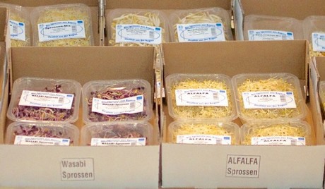 En términos de cantidad, los brotes de soja siguen siendo la variedad más importante. La razón es que los brotes de soja se distribuyen principalmente en recipientes grandes (5 y 10 kg), destaca Peter Hein. "Esta variedad se ha consolidado a lo largo de los años, especialmente entre las cocinas asiáticas del área de Múnich. Las otras variedades de brotes se llevan a todas partes: suministramos a una gran cantidad de proveedores de la restauración, que recogen los productos aquí en nuestro puesto en el mercado mayorista. Nuestros brotes terminan en el sur de Baviera, pero también por ejemplo al otro lado de la frontera, en Austria".