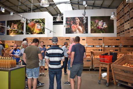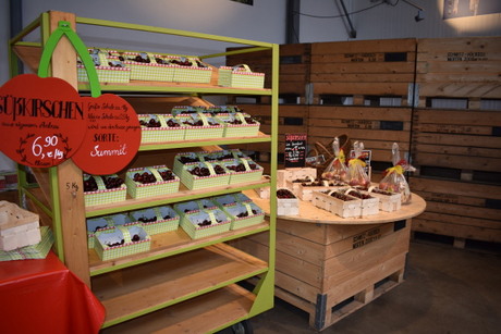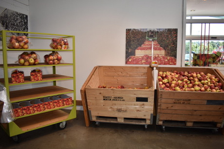 La tienda de la empresa Schmitz-Hübsch se divide en dos partes: una parte para la venta de productos de cosecha propia y la otra parte con las otras variedades de frutas y hortalizas compradas. “Además de vender manzanas, peras y cerezas frescas, también tenemos una amplia gama de productos procesados que incluyen zumos, compota de manzana y chips de manzana. El 25% de las ventas corresponden a productos procesados", dice Roland. “Hemos intentado decorar la tienda lo más moderna posible para que también sea atractiva para los jóvenes y notamos que está funcionando. Además, hacemos mucha promoción en las redes sociales y durante el período de recolección organizamos recorridos por los huertos para clases de primaria”.