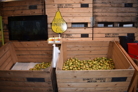 “Nuestra producción no está dirigida a un alto rendimiento, sino al sabor de la fruta. La calidad por encima de la cantidad. Intentamos cultivar la menor cantidad de manzanas posible por cada árbol para obtener el mejor sabor y realmente vale la pena. El precio de un kilo de manzanas oscila entre 1,80 € y 2,30 €. El tamaño de las manzanas no es importante para nosotros. Tenemos clientes para cada tamaño de manzana. A los niños pequeños les gusta comer una manzana algo más pequeña", dice Roland. "Para que nuestros clientes puedan disfrutar de una excelente experiencia de sabor, tenemos 20 variedades diferentes en la tienda durante la temporada. Y para que elegir la manzana adecuada sea más fácil para los clientes, tenemos una mesa de degustación en la entrada de la tienda. Nuestros clientes pueden probar allí las manzanas del surtido".