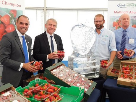 Robert Goodwill, ministro de Agricultura, Pesca y Alimentación, ha presentado dos nuevas variedades de fresas del programa East Malling Strawberry Breeding (EMSBC) del instituto NIAB EMR.