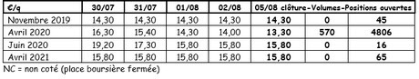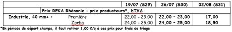 Precio de subasta/venta de Roulers (fuente: REO, mediante PCA): el 05 de agosto: Precio ponderado (rojas y blancas) para patatas recogidas a mano: 0,27 €/kg sin IVA. Abastecimiento: 24 t.