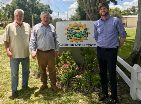 De izquierda a derecha, Wayne Giddings, presidente de Always Fresh Farms; Julio Giddings, fundador y CEO de Giddings Fruit; Matthew Giddings, director comercial de Always Fresh Farms