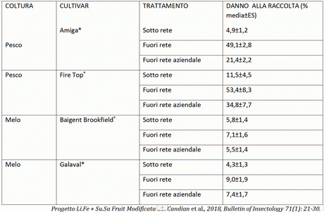 En los campos experimentales con melocotoneros y manzanos en Piamonte se comprobó que el uso de la malla antigranizo fotoselectiva Iridium® (malla 2,4 x 4,8), además de aprovechar de manera óptima la luz, redujo en gran medida los ataques durante el período de estudio.