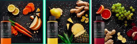Los zumos (disponibles en botellas de 300 ml y en formato de 50 ml) están elaborados con mezclas de frutas y hortalizas, provenientes principalmente de la cadena de suministro italiana. Hay 4 productos: el Suqqo Spa, compuesto principalmente de vegetales verdes (espinaca, lechuga, pepino, apio, menta, limón); el Lunch, que consiste en manzana, ciruela, arándano y jengibre; el Wake Up es una bebida energética con un sabor exótico a base de piña, pera, manzana Fuji y jengibre; y el Time Out lleva manzana, fresa, naranja y té verde al jazmín.