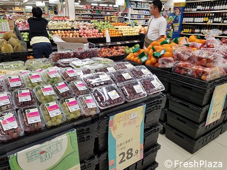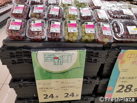 Con ocasión de la feria Asia Fruit Logistica, visitamos un supermercado en Hong Kong, ubicado en el distrito de Kowloon, para conocer el precio de la fruta. El artículo más caro era la uva española, con un precio de 11,20 euros/kg, mientras que el más barato era la manzana Royal (primer precio a 1,50 euros/kg).