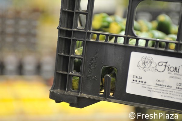 "Compramos cajas usadas para fabricar cajas nuevas que cuentan con la certificación para su uso en el sector hortofrutícola, es decir, que son adecuadas para estar en contacto con los alimentos". Mariano Magarotto, de la empresa italiana Plastic Packaging, habla sobre el proyecto que está llevando a cabo y presentando en Italia. Vimos a Mariano en Maap, el mercado agroalimentario de Padua, donde se presta una gran atención a los problemas medioambientales, tanto por parte de la gerencia como de los mayoristas.