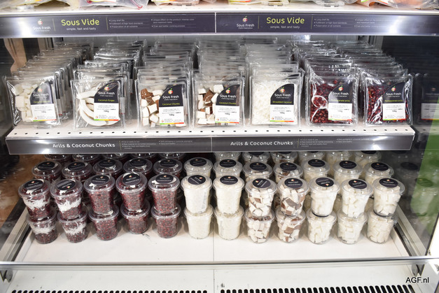 Trozos de coco y arilos de granada en Sous Fresh