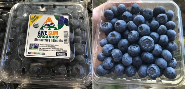 Awe Sum Organics tiene pequeños volúmenes de arándanos ecológicos, que actualmente están llegando desde Chile, y habrá mayores volúmenes disponibles a partir de principios de diciembre.