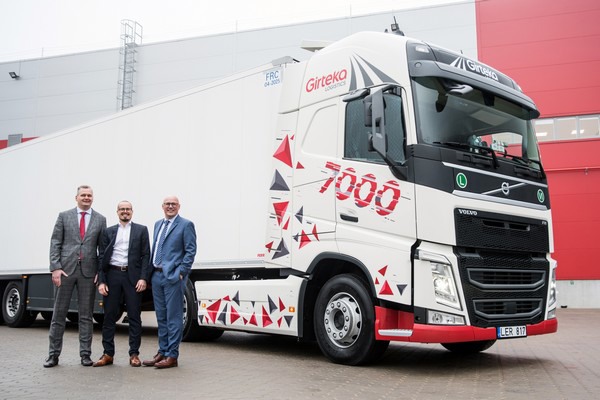 "Estamos muy orgullosos de que un nuevo Volvo FH se convierta en el camión número 7.000 entregado a Girteka Logistics", dice Roger Alm, presidente de Volvo Trucks. "Esta es una prueba más de nuestra buena relación comercial a largo plazo, en la que entregamos camiones con bajo consumo de combustible, comodidad superior para el conductor, servicios de apoyo que contribuyen a un mejor retorno de la inversión y un futuro sostenible para una de las empresas de transporte por carretera más grandes de Europa".