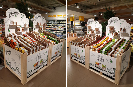 La fortaleza de este concepto es que puede aplicarse a la mayoría de las frutas y hortalizas frescas, desde fresas hasta frutas de pepita y desde mandarinas hasta tomates. En el supermercado Jumbo de Arnoud van de Graaf tenemos una superficie considerable de su departamento de frutas y hortalizas a nuestra disposición. Los interesados están invitados a echar un vistazo, porque somos pequeños y por lo tanto flexibles para realizar cambios rápidamente y al mismo tiempo tenemos la capacidad suficiente para iniciar múltiples pilotos", concluye Johannes con entusiasmo.