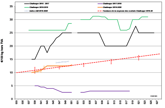 Challenger: de 12,50 a 13,00 €/q; oferta un poco más presente de lotes de difícil conservación.