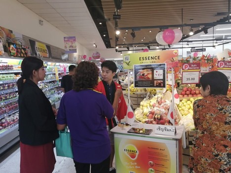 En cuanto a lo que se ha desarrollado el canal de ventas de la manzana en los últimos años, Yasuko señala: "Las ventas de manzanas japonesas en el extranjero han sido posibles principalmente a través de comercializadoras y la cooperación agrícola de Japón. No había muchas empresas que vendieran manzanas directamente en los supermercados todavía, pero esperamos ser líderes en el suministro de manzanas a los supermercados en lugar de dejárselo a los exportadores locales. En vez de usar nuestro nombre corporativo, usamos ESSENCE como marca para vender las manzanas a las cadenas de supermercado, pues nuestra intención es brindar las características naturales de las manzanas japonesas –sabor de alta calidad, lo que creemos que es la 'esencia' de cualquier tipo de producto agrícola– a los consumidores", añade Yasuko. "Lo que hemos visto en los últimos años es que los consumidores del sudeste asiático cada vez prestan mayor atención al diseño del envase de la fruta. Tratamos de comunicar las historias relacionadas con la fruta en el envase, por ejemplo cómo se ha producido, quién la ha producido o cómo ha llegado al retailer".