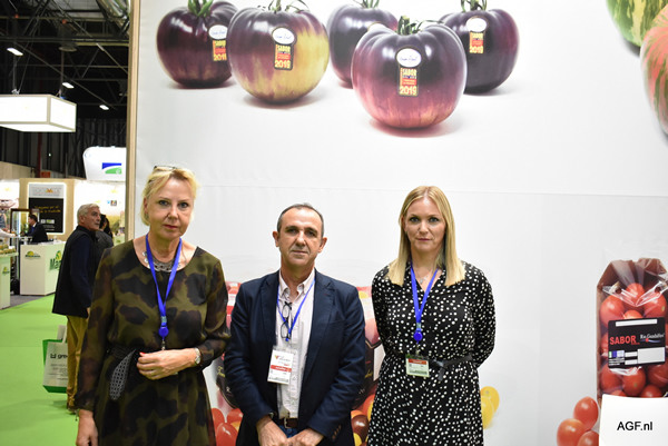 Ellen van Kester, Pepe Lorente y Patricia Gómez, de Hortícola Guadalfeo, durante Fruit Attraction