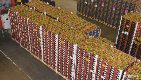 Vista de las tres instalaciones de clasificación para mangos y aguacates: la velocidad de procesamiento óptima de las grandes líneas de clasificación es de 34.000 aguacates por hora o 26.500 mangos por hora al 70% de capacidad.