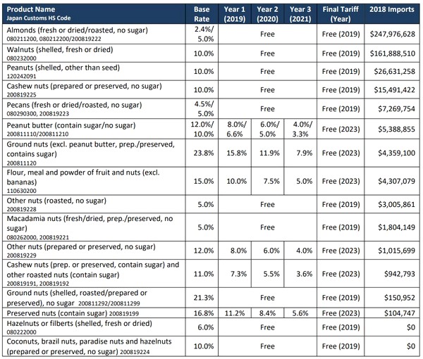 Fuente: Tratado para los frutos secos dentro del Acuerdo Comercial entre EE. UU. y Japón (USJTA)