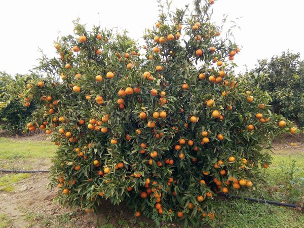 Árbol de clementinas Sanzo con frutas maduras a finales de enero