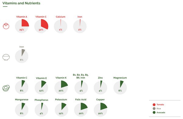 Si hablamos del tomate, la hortaliza que necesita la menor cantidad de agua para su producción, los nutrientes que proporciona son mínimos en comparación con el aguacate. La producción de tomate requiere pocos recursos hídricos, pero el aporte energético no es proporcional.