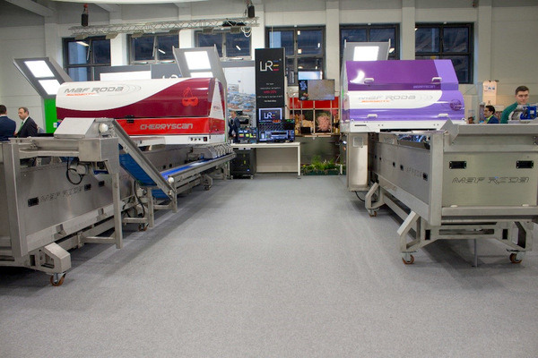 Cada año en la feria Fruit Logistica, el pabellón 4.1 de Messe Berlín se dedica por completo a las máquinas. Este año, MAF RODA Agrobotic presentó numerosas calibradoras de gran innovación, entre las que se encuentran la nueva Berryway para el calibrado de arándanos y la Cherryway 4 para el de las cerezas. Las dos calibradoras expuestas estaban equipadas con todas las últimas versiones de los sistemas electrónicos de clasificación externa de calidad Berryscan y Cherryscan.