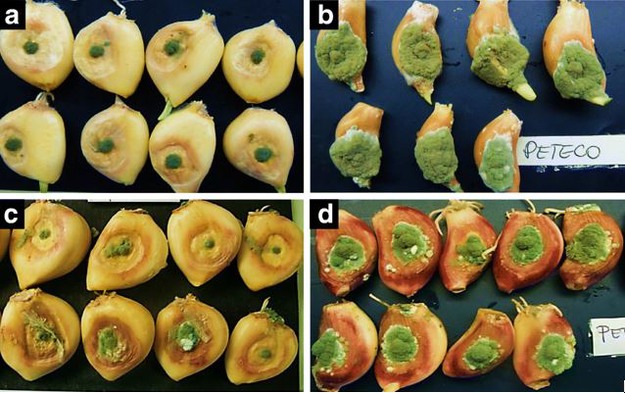 Fuente: María C. Salinas & Pablo F. Cavagnaro, 'In vivo and in vitro screening for resistance against Penicillium allii in garlic accessions', 2020, European Journal of Plant Pathology, vol. 156, págs. 173-187.
