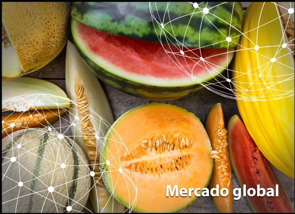 La oferta de melones en el mercado norteamericano actualmente es entre escasa y media. El mercado de la sandía es muy escaso por las condiciones meteorológicas en México. La falta de producto ha estado elevando los precios en el último mes y medio y se espera que las cosas empeoren, pues varias regiones mexicanas están acabando, con la consiguiente brecha en la temporada. La demanda de sandías suele ser baja en esta época del año, pero la escasez es mayor ahora. Los precios de las sandías ascienden a cerca de 0,36 dólares por caja y no se prevé una subida del precio. Solo cuando los volúmenes se recuperen podría bajar el precio a 0,20 dólares la caja.