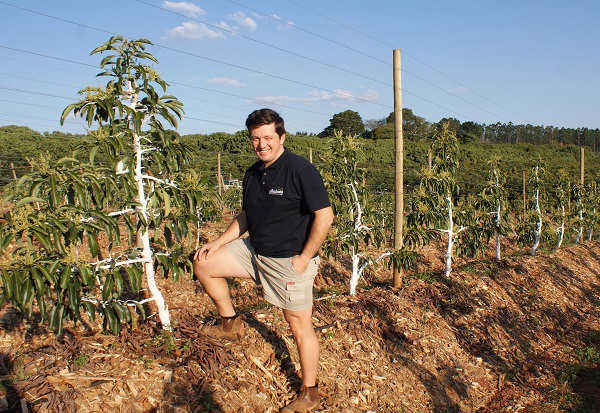 Zander Ernst en sus huertos pioneros de aguacate en espalderas y alta densidad, que él ve como el futuro de la producción de aguacate
