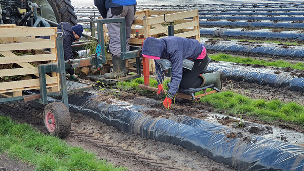 "La siembra tuvo lugar en un día frío pero hermoso, con el sol apareciendo de vez en cuando entre las nubes blancas. Sin duda, eso ya fue un buen comienzo para las plantas. Una máquina hizo los hoyos para la siembra en los caballones de arena. Luego se pusieron las plantas en el suelo, un trabajo todavía manual. El año que viene ya podremos cosechar y probar los primeros arándanos de nuestra nueva plantación", dice Leon Driessen, director comercial de la empresa Driessen Blueberries.