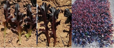 Pak Choi Red Moon F1, a la derecha Mizuna Sunrise F1