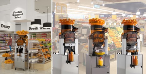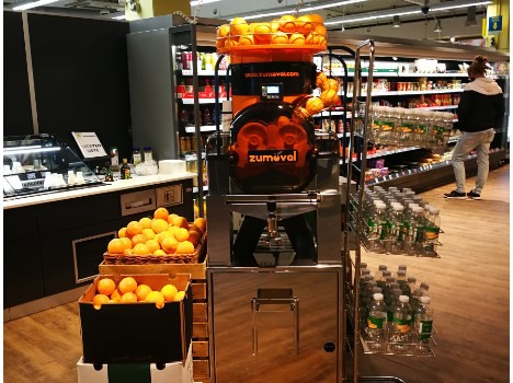 La empresa española Zumoval fabrica máquinas exprimidoras de cítricos desde hace más de 25 años. Ahora ha lanzado al mercado un exprimidor de naranjas con un mecanismo de limpieza incorporado. La máquina incluye la opción de limpiar el sistema con una bomba de agua, incluso cuando no hay una conexión directa de agua disponible. Con el limpiador de espuma se puede hacer una limpieza previa, ya que disuelve todos los residuos de pulpa y jugo adheridos tanto en la superficie de prensado como en la pared posterior. Esto reduce considerablemente el tiempo de limpieza y facilita el proceso.