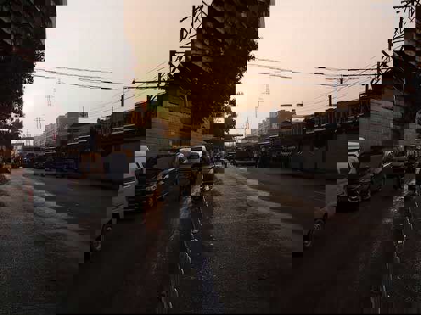 Exterior del mercado mayorista de fruta de Jiangnan, en Cantón