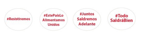 Por ello, apoyando las iniciativas que ya se están llevando a cabo desde el Grupo Nufri (carteles de ánimo en todas las cargas con salida desde Mollerussa, La Rasa y Huelva, donación de fruta al Banco de Alimentos de Lleida y Tarragona, como también a la Cruz Roja de Alacant y Soria) se han creado cuatro estíquers solidarios con cuatro mensajes de ánimo, #hashtags, para todos sus consumidores:
