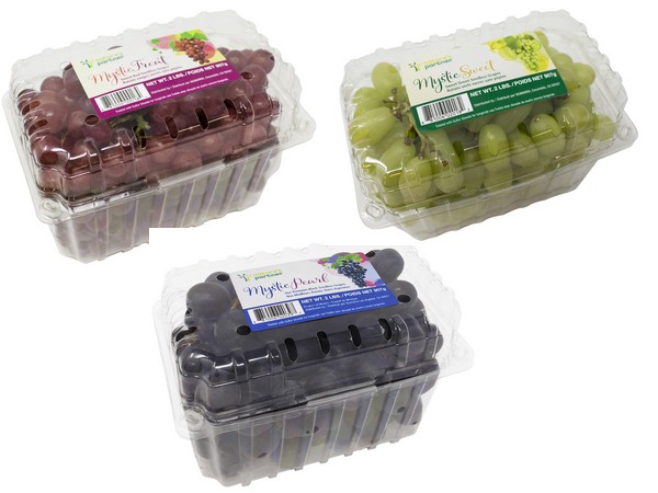 El programa de uvas Mystic de Giumarra incluye las uvas rojas sin semillas Mystic Treat®, las uvas verdes sin semillas Mystic Sweet® y las uvas negras sin semillas Mystic Pearl®. Las uvas Mystic se envasan por pedido especial y están disponibles en envases clamshell de 900 g, 1,4 kg y 1,8 kg.