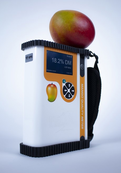 Ivonne comentó que los Medidores de Calidad F-751 nacen a partir de un instrumento madre, el F-750 Medidor de Calidad de Productos, el cual utiliza la espectroscopia de infrarrojo cercano (NIR), desarrollado en la Universidad Central de Queensland, para estimar métricas de calidad como la materia seca, los sólidos solubles totales (TSS o Brix), la acidez valorable y el color. El F-750 tiene actualmente modelos iniciales para manzanas, uvas, mandarinas, mango, pera, caqui, aguacate, etc.