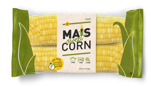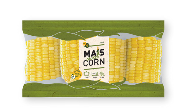 Los nuevos productos se suministran con un film impreso, pero también están disponibles para marcas de distribuidor. El embalaje consiste en un flowpack de OPP reciclable con microperforación. "Con este embalaje, prolongamos la vida útil del maíz y evitamos el desperdicio de alimentos", dice Ellis. "Además de los nuevos conceptos, el maíz con hojas, naturalmente, sigue formando parte de nuestro surtido y está disponible en varios formatos".