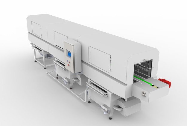 En la industria de la IV gama, se utilizan cientos de cajas para transportar la materia prima o los productos semiprocesados. Pero el proceso de limpieza de estas cajas conlleva un coste enorme, pues demanda mucho tiempo y mano de obra. A petición de los clientes, Lueon Technologies Co., Ltd. ha diseñado una lavadora automática de cajas que combina lavado y secado.