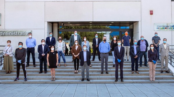 El presidente de Mercamadrid, Miguel Ángel Redondo, ha querido acompañar en este emotivo acto a empresas y trabajadores que durante los dos meses de confinamiento han seguido trabajando para garantizar el abastecimiento de productos frescos a los establecimientos de la Comunidad de Madrid.