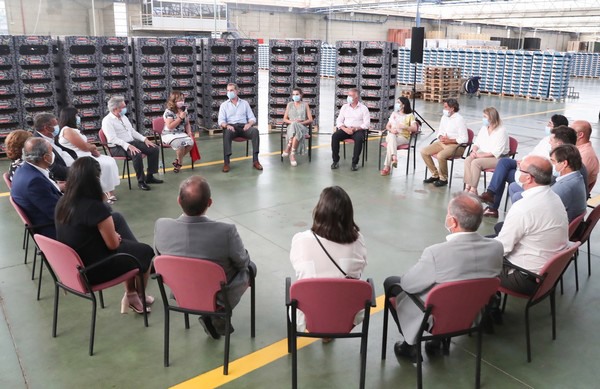 Tras la visita al campo, los monarcas se dirigieron a la planta de empaquetado “Las Moradas”, donde se mantuvo una reunión con representantes del sector (agricultura, ganadería, pesca y desarrollo rural) de las Islas Canarias.